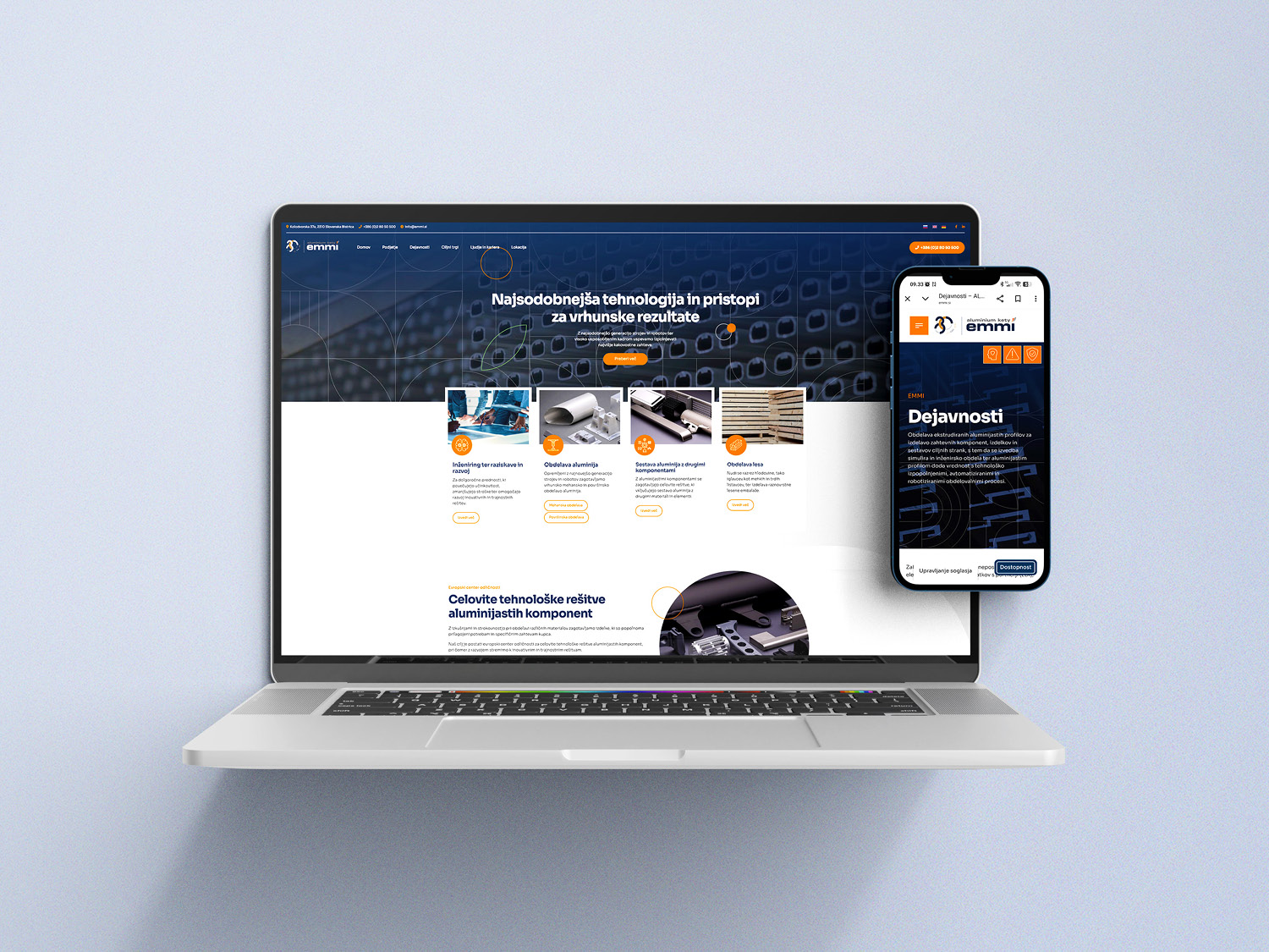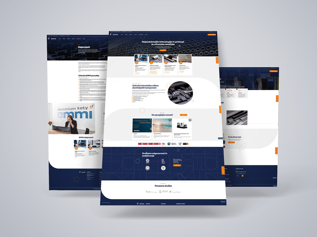 Za naročnika EMMI d.o.o. smo zasnovali spletno stran, kjer so vsebine razporejene premišljeno, z jasnim poudarkom na uporabniškem toku in občutku urejenosti. Informacije so podane jasno in brez odvečnih plasti, spletna izkušnja pa je nadgrajena s subtilnimi animacijami, ki dodajo dinamiko in lahkotnost.