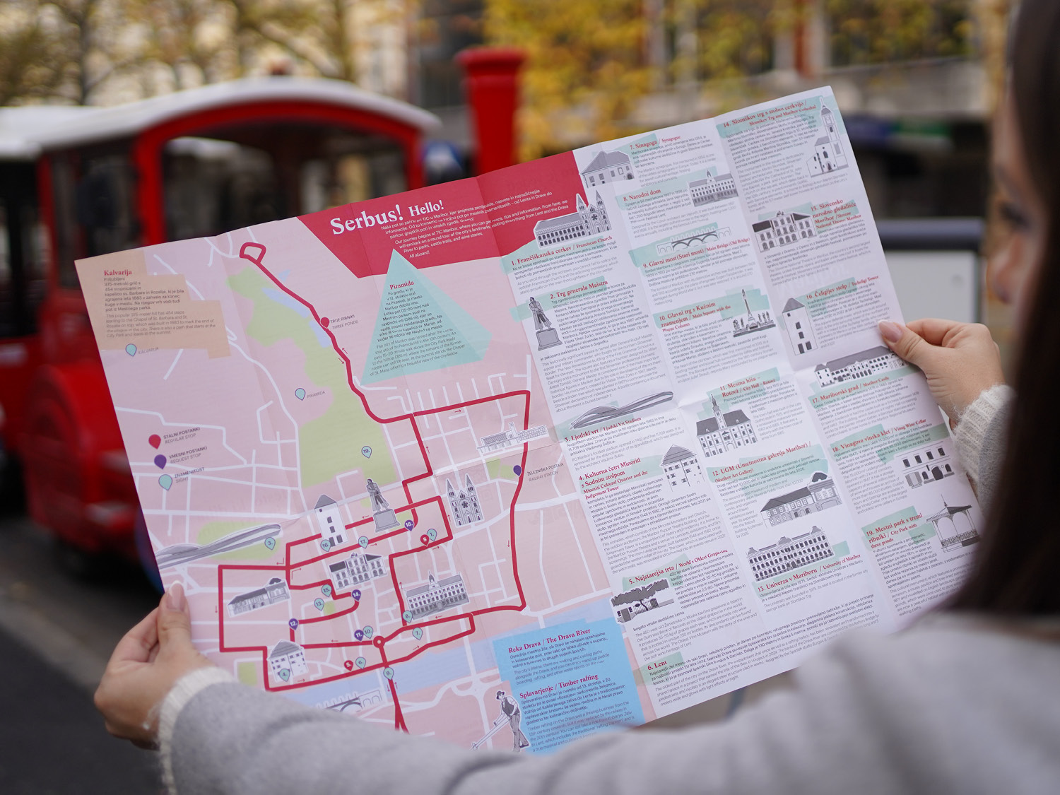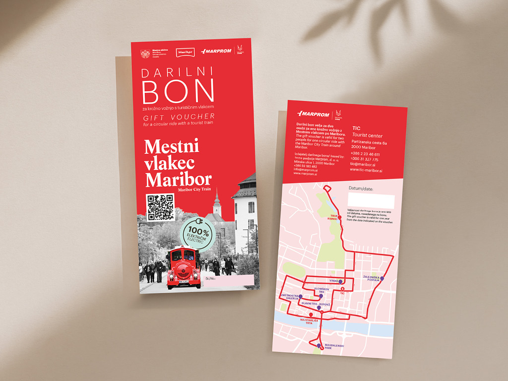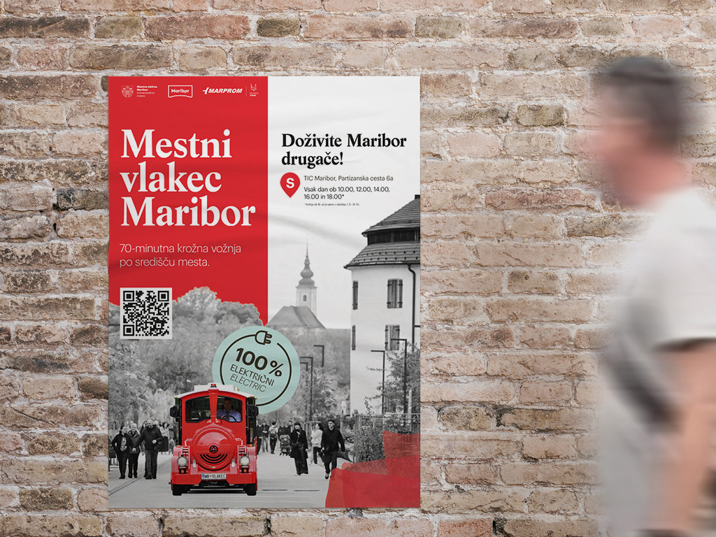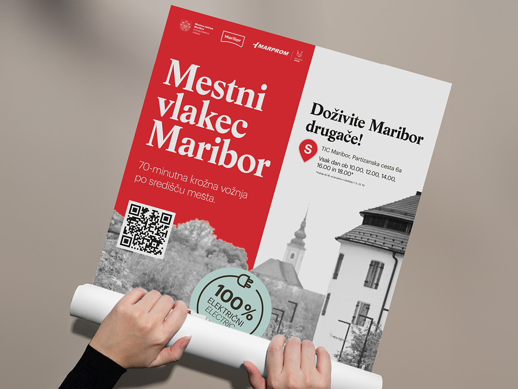 Za naročnika Marprom smo zasnovali nabor vizualnih in komunikacijskih materialov za projekt Mestni vlakec – trajnostno urbano doživetje, ki povezuje ključne mestne točke in znamenitosti. Projekt združuje fizično izkušnjo vožnje skozi mesto z jasno, sodobno in uporabniku prijazno komunikacijo v prostoru, tisku in digitalnem okolju. V okviru projekta smo oblikovali ilustriran zemljevid poti, ki deluje kot osrednje orientacijsko orodje in hkrati kot vizualni povzetek mestne izkušnje.